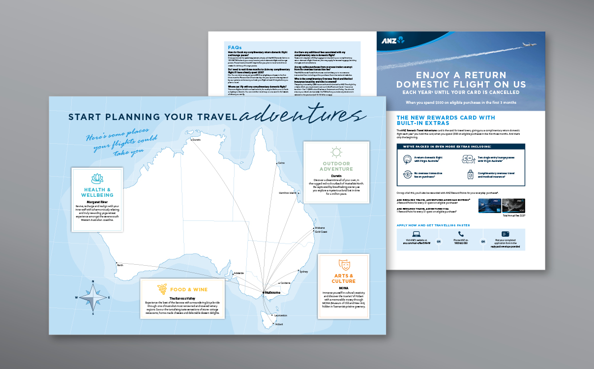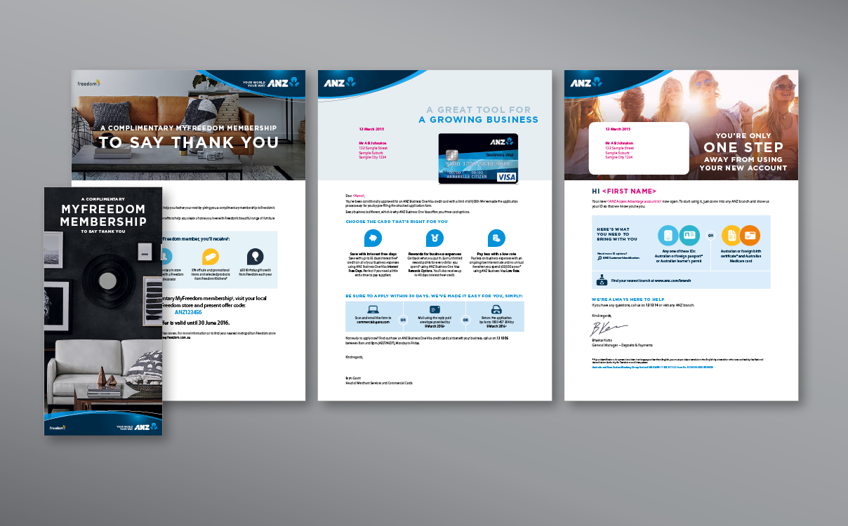 Working alongside the Publicis creative teams to produce a range of assets for ANZ's direct client communications across both print and digital mediums.